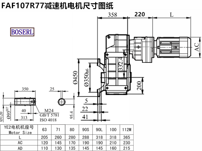 | 平行軸斜齒輪減速機 | FAF108R78YPB100L4 | FAF108R78DRE71M4 | FAF108R78DM80M4 |