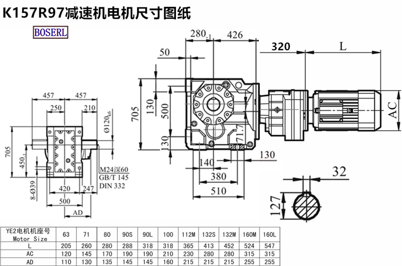 K158R98DR160M4_K158R98DM100M4_K158R98DRN112M4_K158R98DVE132M4減速機電機型號大全