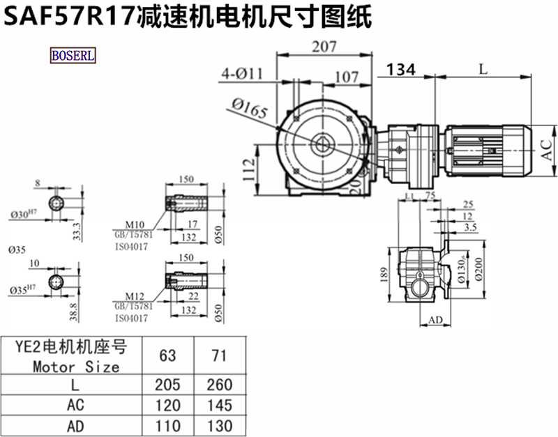 | 伺服電機渦輪渦桿減速機 | SAF58R18YPB71M4 | SAF58R18DRE71M4 | SAF58R18DRL71M4 |